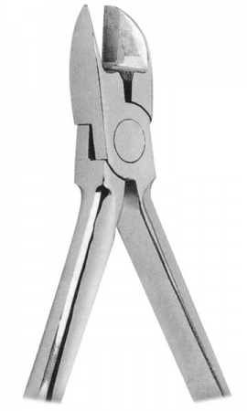 Wire cutter. For ligature wires and pins. It is strong enough to bend archwire ends after distal cutting-maximum cutting capacity upto 0.56x0.7mm. (.022'x.028') with tungsten carbide insert.